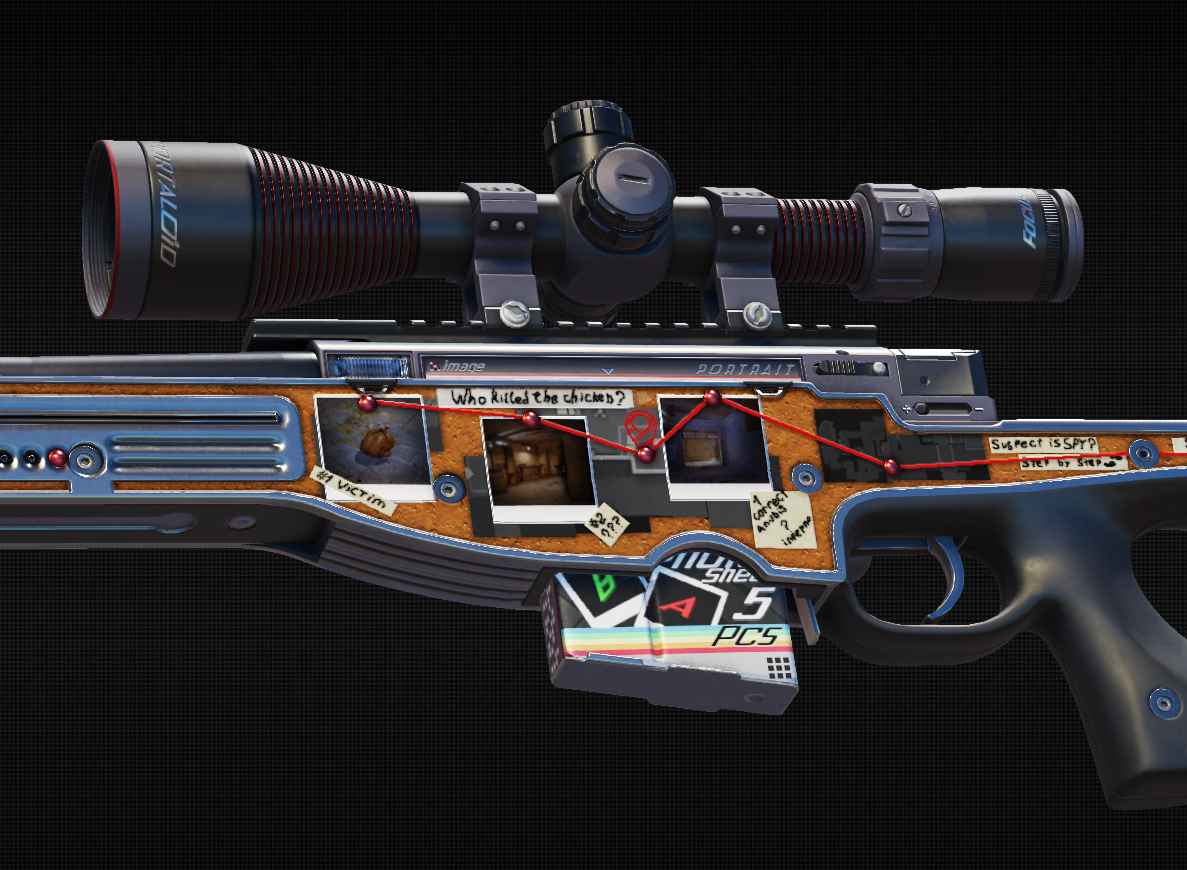 A double agent in every sense. A girl with barcode lines, transparent glossy elements (visible only at certain angles), encrypted messages, and an unmistakable theme of duality between the light and dark sides. The creator says they were inspired by real paintings about the balance of light and darkness within a person. The main trick lies in the details: at a specific angle, secret codes and silhouettes emerge. Atmospheric, mysterious, and genuinely deep in its lore. One of the most “intellectual” and stylish skins in the Spy Tech theme.