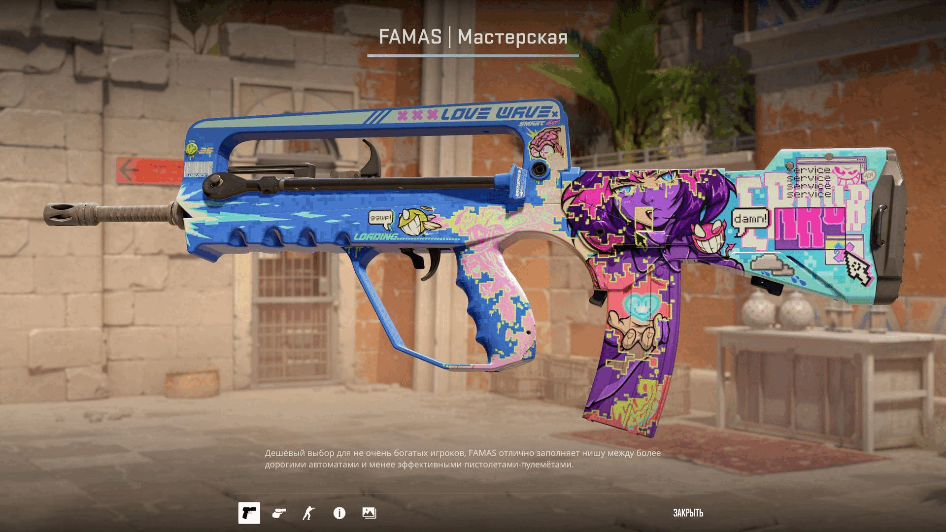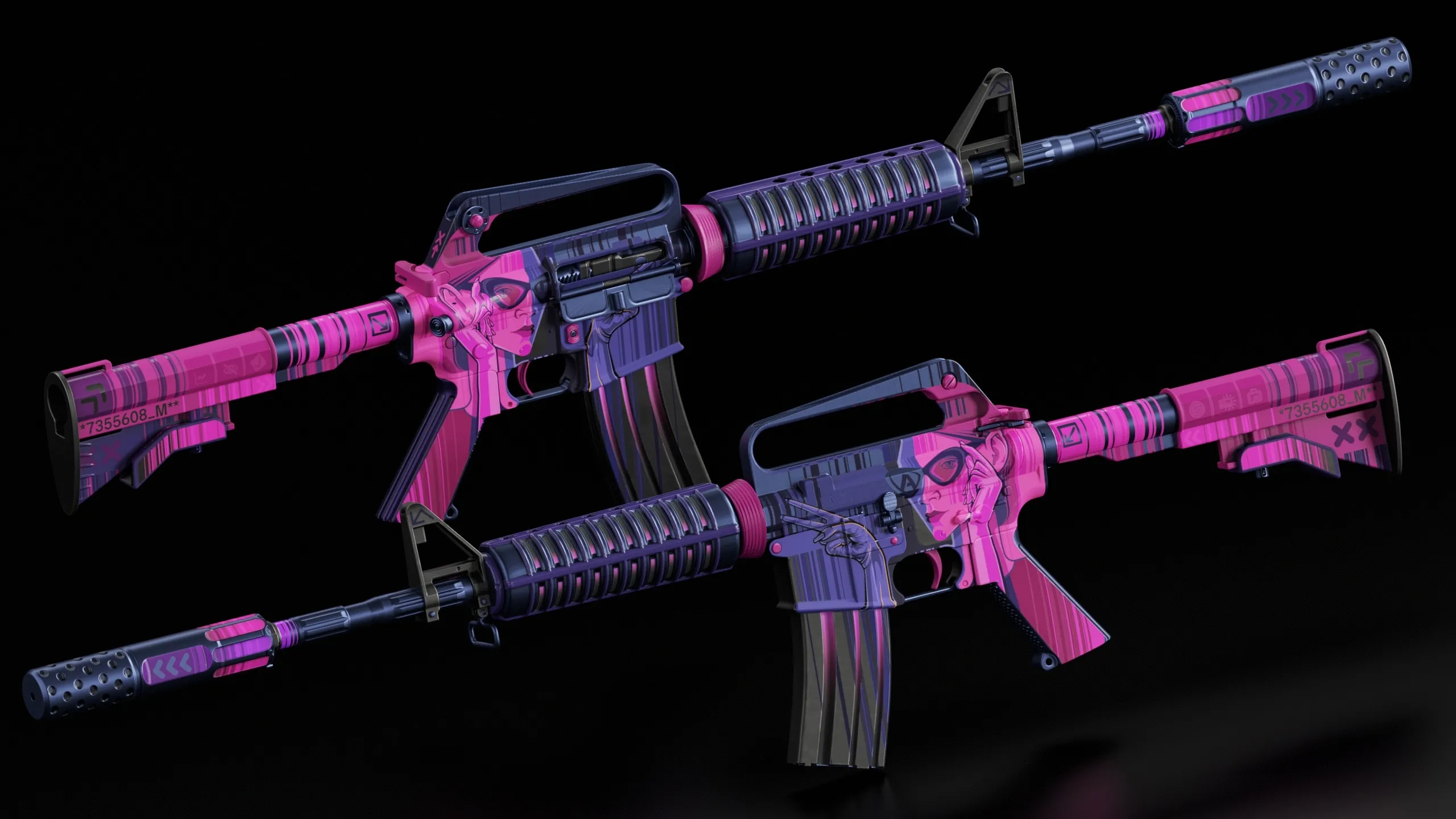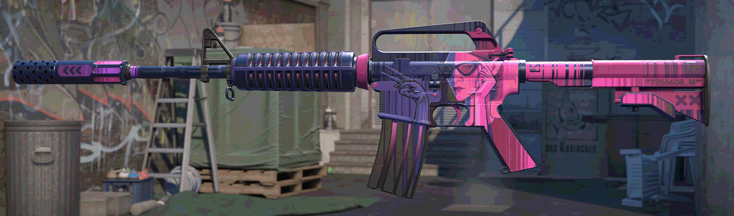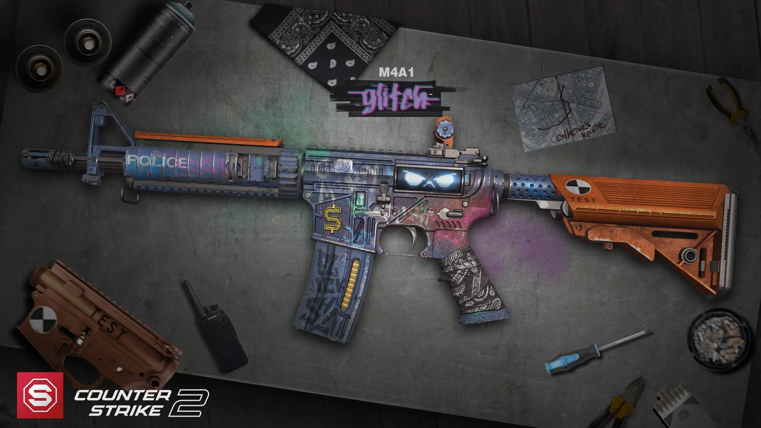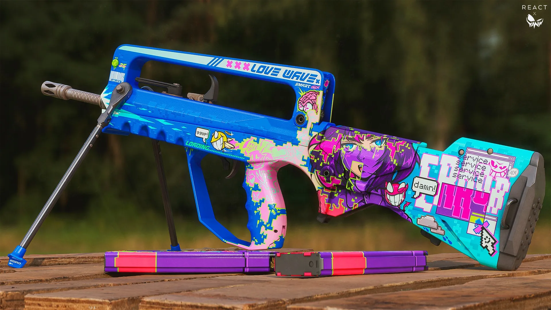 Glitch art in aggressive pink-violet neon: hacker aesthetics with graffiti, police markings, bandanas, flickering eyes, text, and symbols. The layers break apart, colors bleed into each other, and textures malfunction — as if the weapon has been hacked in real time. A very contemporary, chaotic, and vivid Spy Tech skin with the vibe of cybercrime and street hacking. This will be a hyped skin for those who like their weapons to look as though they were assembled piece by piece, built by many hands with different tastes, with room found for every idea.
