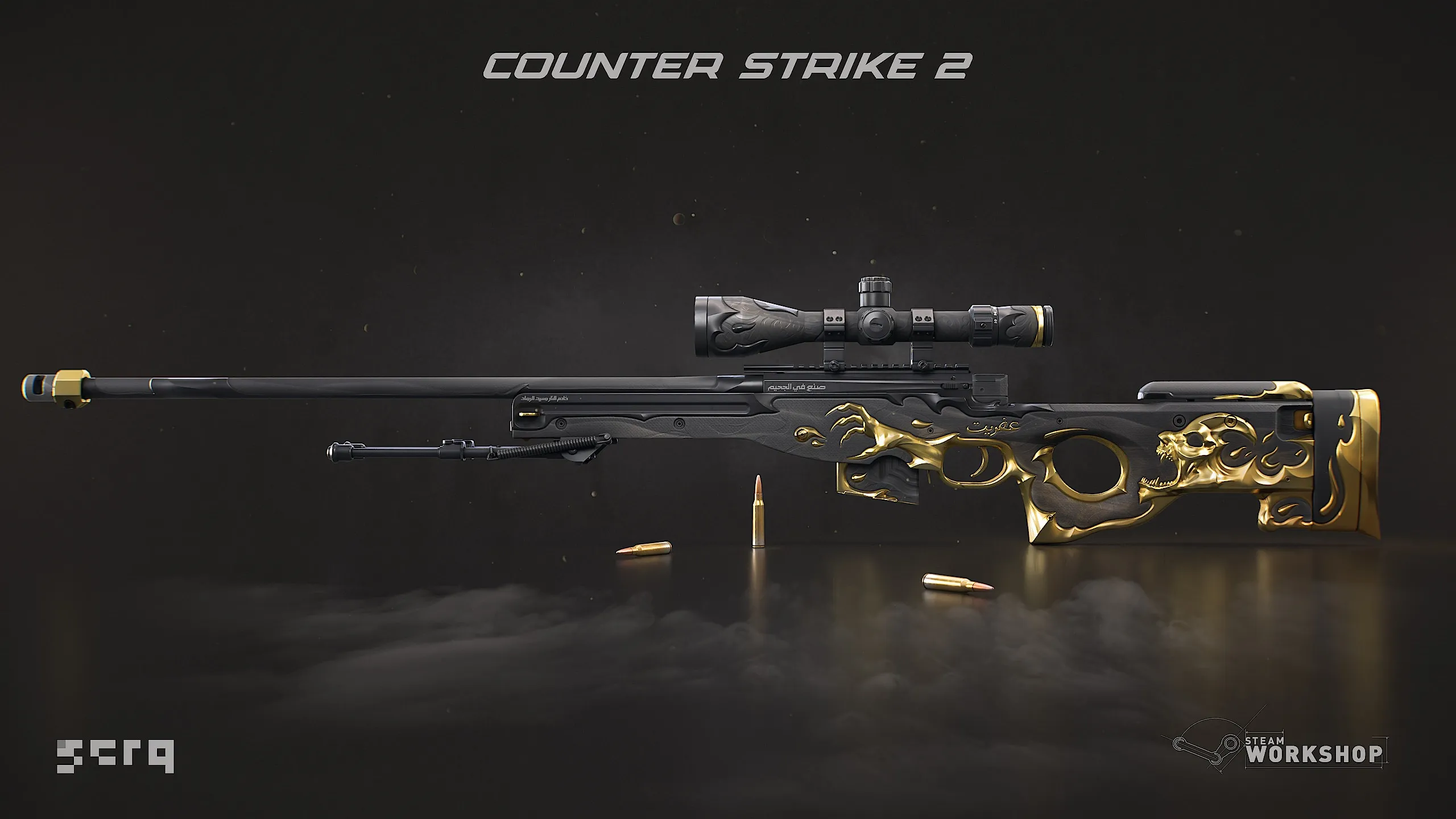Among bright, colorful competitors, this AWP stands out like a black shadow in the desert. The centerpiece is a hand-sculpted gold relief of an Ifrit: a snarl, sharp claws, and flames bursting from its maw. All of this sits against a deep matte black background that absorbs light, while the gold accents literally burn. Flame and smoke intricately wind around the barrel, stock, and scope, giving the impression that the rifle is alive and breathing fire. This isn’t just a skin — it’s a mythic artifact from Arabian legend, where the Ifrit symbolizes untamable fury and dominion over flame. Brutal minimalism + aggressive gold = a classic Covert-tier skin that will look epic against desert maps.