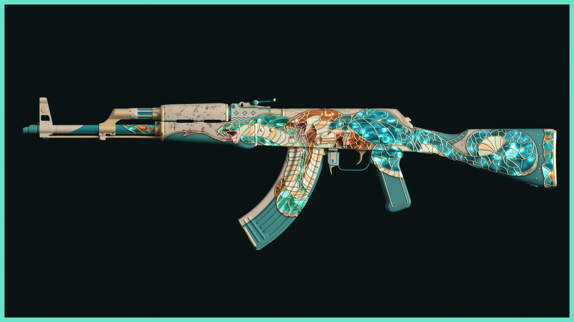Imagine an ancient temple where instead of stained glass there are poisonous glass mosaics soaked in toxic light. This AK is completely covered in turquoise-and-gold “glass panes,” beneath which a living, pulsating liquid seems to flow. Droplets, serpentine veins, and a faint inner glow create a hypnotic effect — it feels as though an ancient poison is churning inside the weapon, ready to burst free. Realistic depth and interplay of light make every shot feel visually dangerous. The creator left a rather cryptic note: “Rumor has it a toxin flows within… hold it and you get goosebumps.” In-game, this will be one of the most atmospheric skins in the collection — a fusion of Arabian mosaic art and dark alchemy.