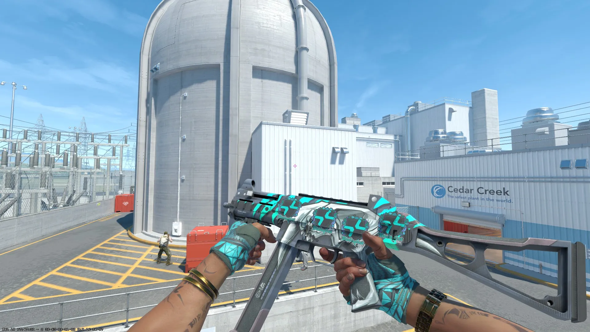 The chrome body with its malachite pattern looks like a polished mineral — rich teal ripples along the wavy lines and immediately reads as the color of PARIVISION. The pattern feels alive and textured, making the weapon not just vibrant but visually “moving” when you inspect it. The unpainted details surrounding it only heighten the effect, keeping all focus on the saturated body. In this form, the MAC-10 looks like a compact fan artifact: small, fast, and perfectly in sync with the club’s aesthetic.
