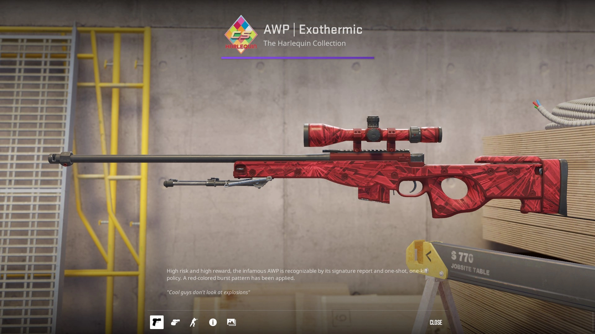 - AWP | Exothermic (Harlequin) – огненно-цветная винтовка с небольшими градиентами, напоминающий расцветку Doppler Ruby. Новый хит красных инвентарей.