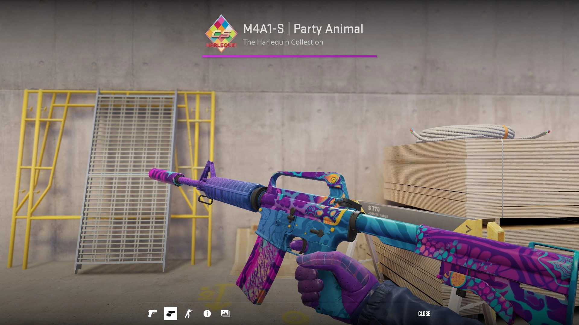 - M4A1-S | Party Animal (Harlequin) – праздничный дизайн с конфетти-мотивами и динамическим паттерном, который должен создавать интересные, уникальные оригинальные узоры.