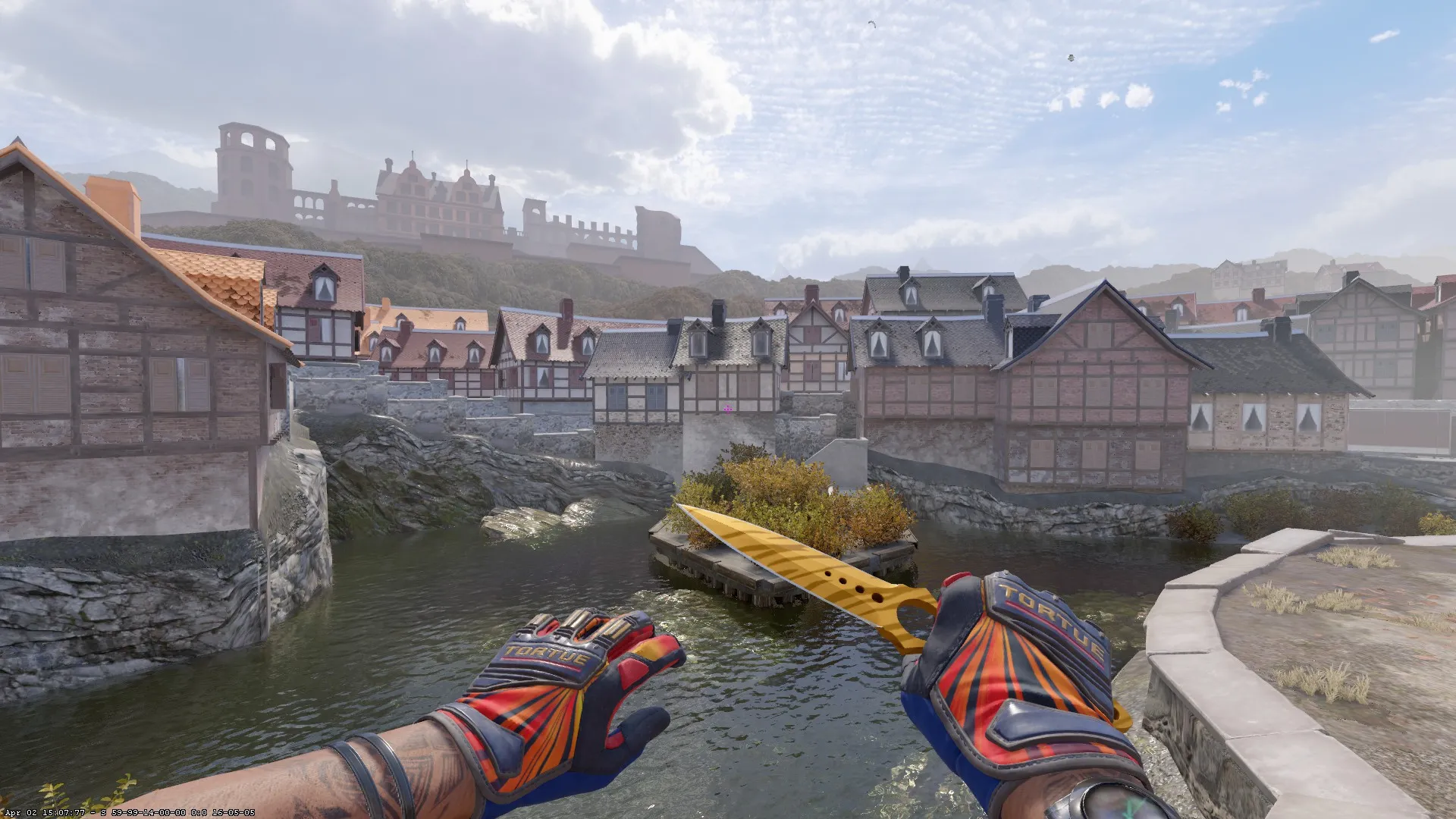 Неочевидное по цветам, но очень гармоничное сочетание. Жёлто-оранжевый Sunburst на перчатках отлично дружит с золотистым Tiger Tooth и чёрными полосами на лезвии Skeleton Knife. Узоры на перчатках и «тигриные» полосы на ноже создают визуальную связь. Получается динамично, агрессивно и в то же время стильно. Хороший выбор для любителей ярких, но не кислотных комбо.