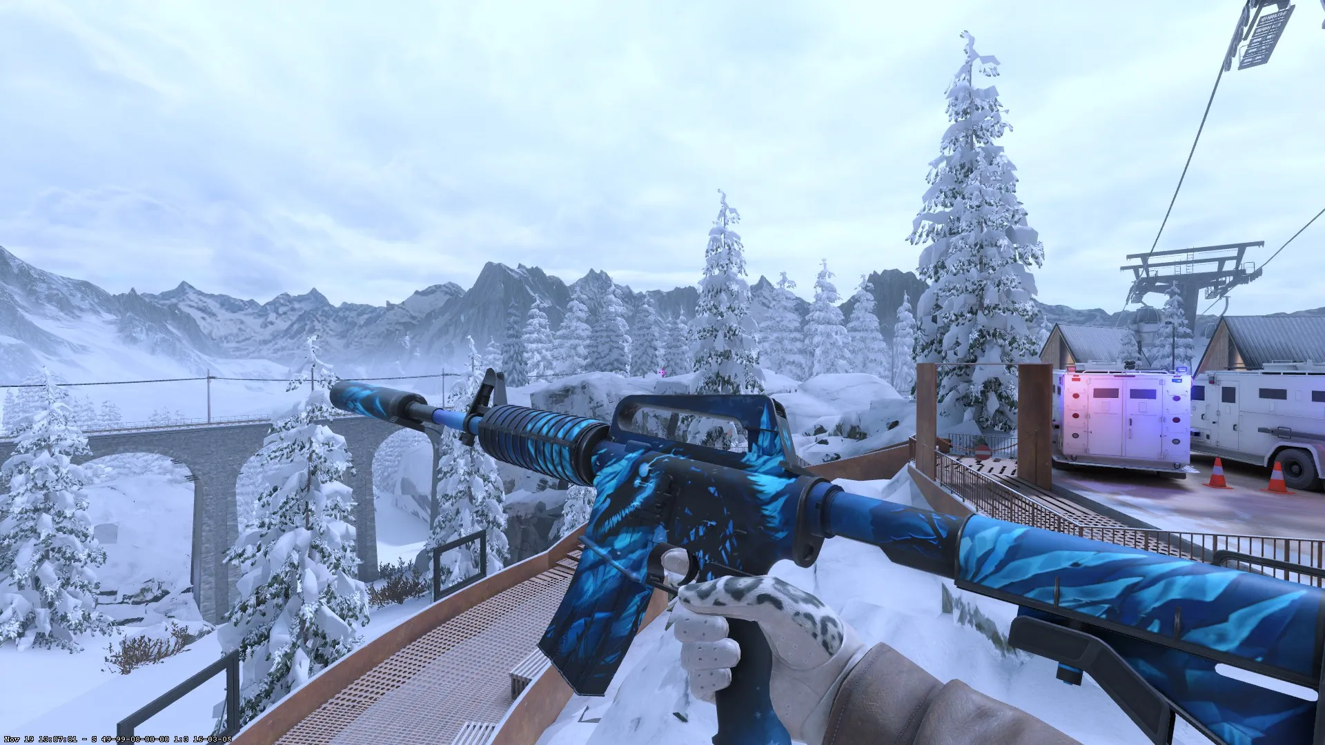 Оружие окрашено в ярко-синий цвет зернистой металлической краской, дополненной элементами бренда AXIA. В описании скина присутствует фраза «AXIA SPORTS – мы соревнуемся, чтобы вы отдыхали!». Этот слоган будто шепчет: «Доверяй мне в любой пурге – я не подведу». Затвор без наклеек шикарно отражает свет, становясь практически белоснежным, как чистый зимний лёд, без лишнего мусора и соринки. Поэтому не поддавайтесь искушению использовать его для стикеркрафтов – здесь он хорош сам по себе. Топ выбор для T: синий мерцает в полумраке, а зернистость добавляет текстуры снега, который словно блестит на зимнем солнце за счёт glitter-эффекта.